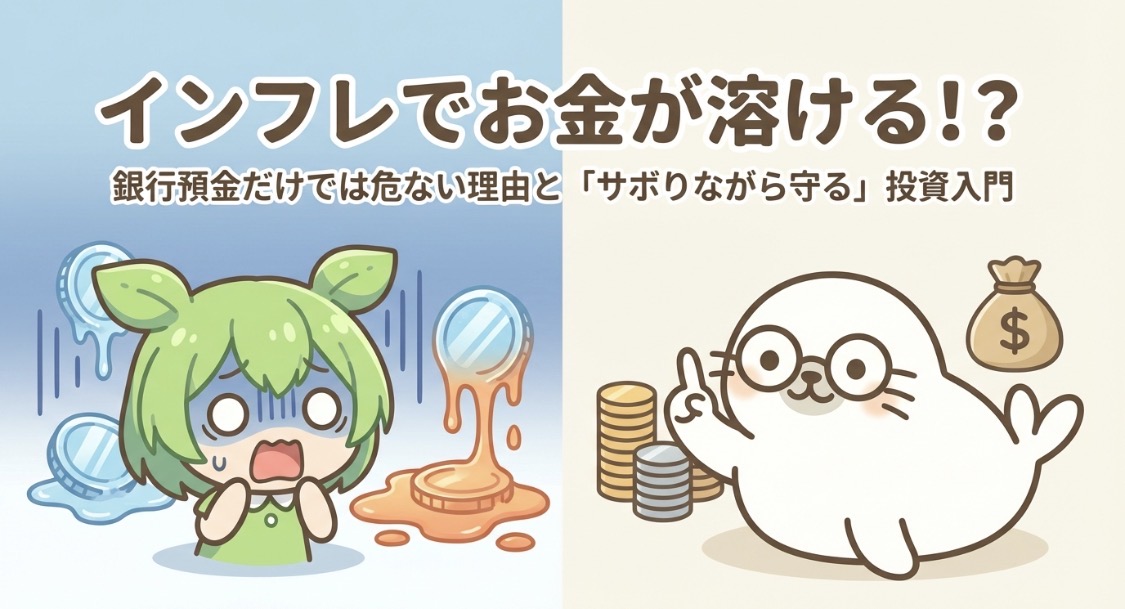 今の日本の銀行預金金利は、インフレのスピードに追いついていません。銀行にお金を預けているだけだと、物価の上昇に対してお金のパワーがじわじわと削られていきます。